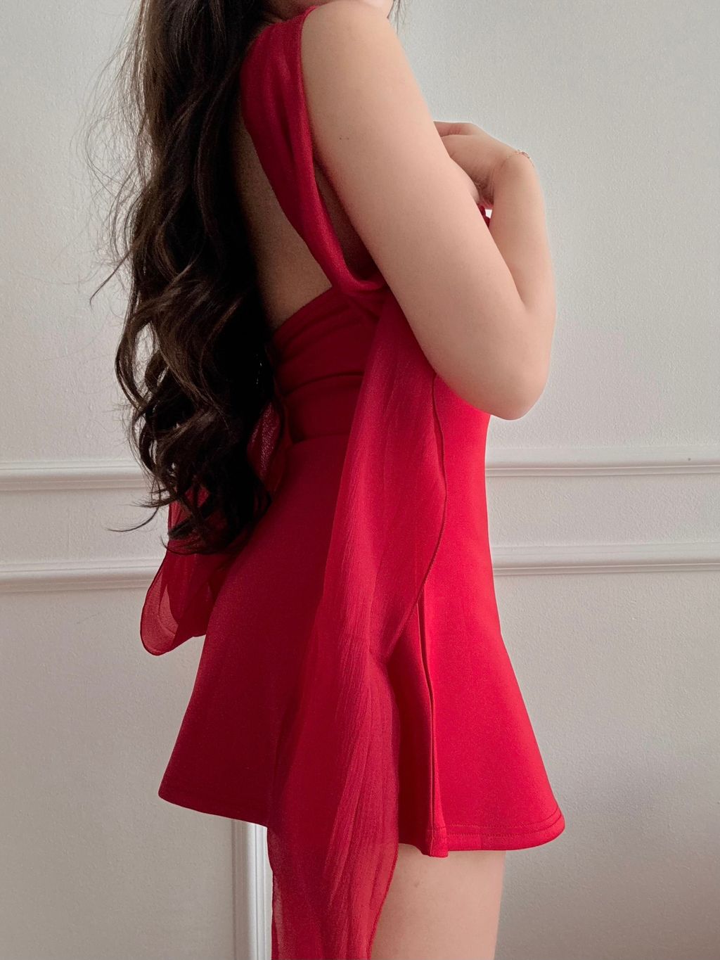 A super elegant yet chic mini dress with flare bottom, highly stretchable and made of great quality. Has the perfect cutting that gives you that snatched waist look.