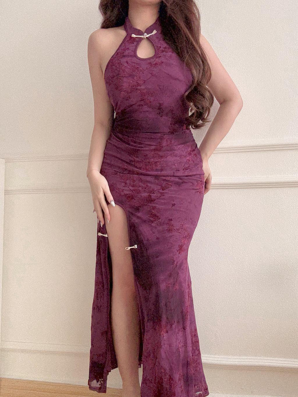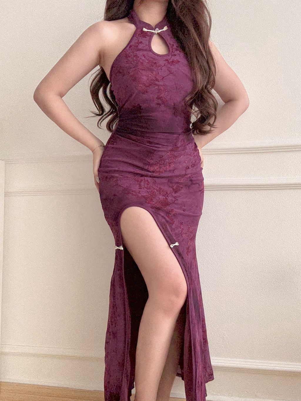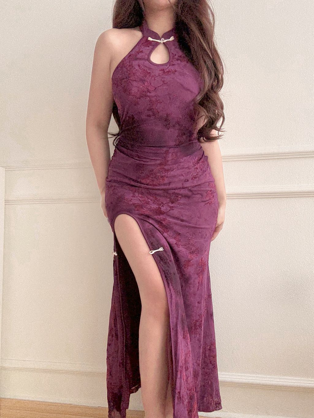 Jeni Velvet Floral Maxi Cheongsam