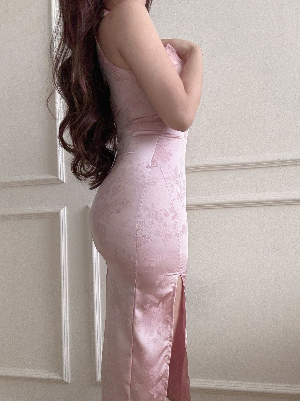 Chienwei's stats are 86/68/96cm, wears M but is tight on the hips.