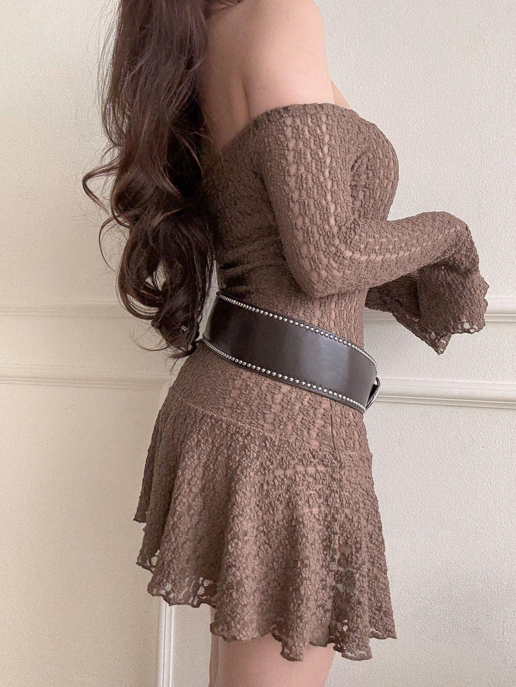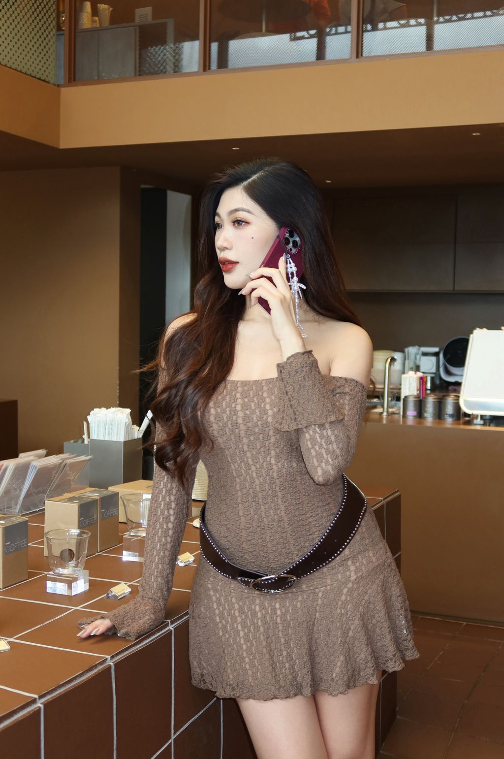 Cute dress with crotchet design and comes with lining, totally non sheer, has a super slim-looking design, comes with cute skater design and trumpet sleeves. Highly stretchable and great quality.